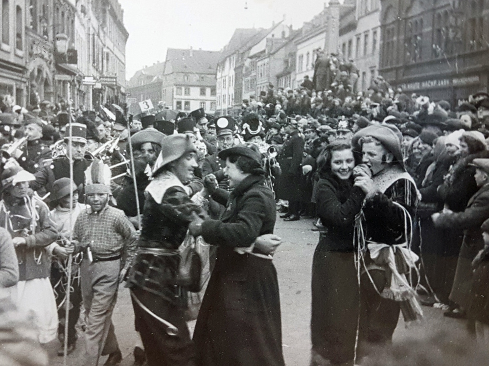 Historische Faschingsfotos: Faasend am St. Johanner Markt 1938 - Volker Mildenberger