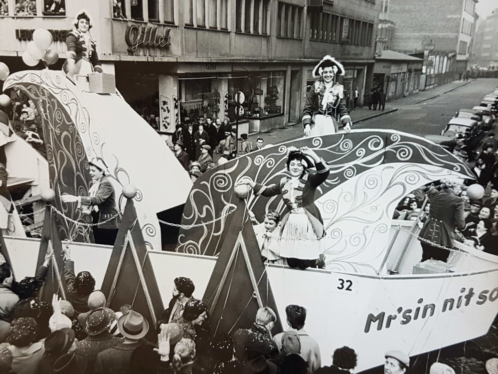 Historische Faschingsfotos: Umzugsschiff der M'r sin nit so - Volker Mildenberger
