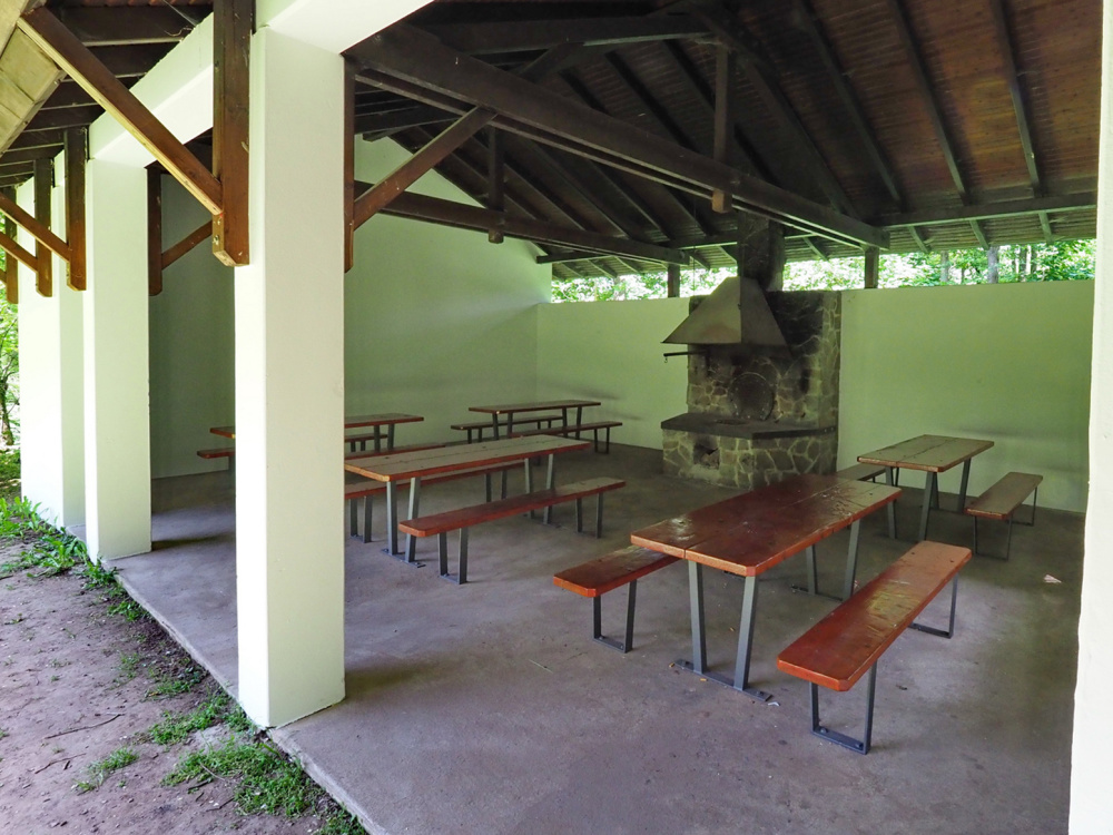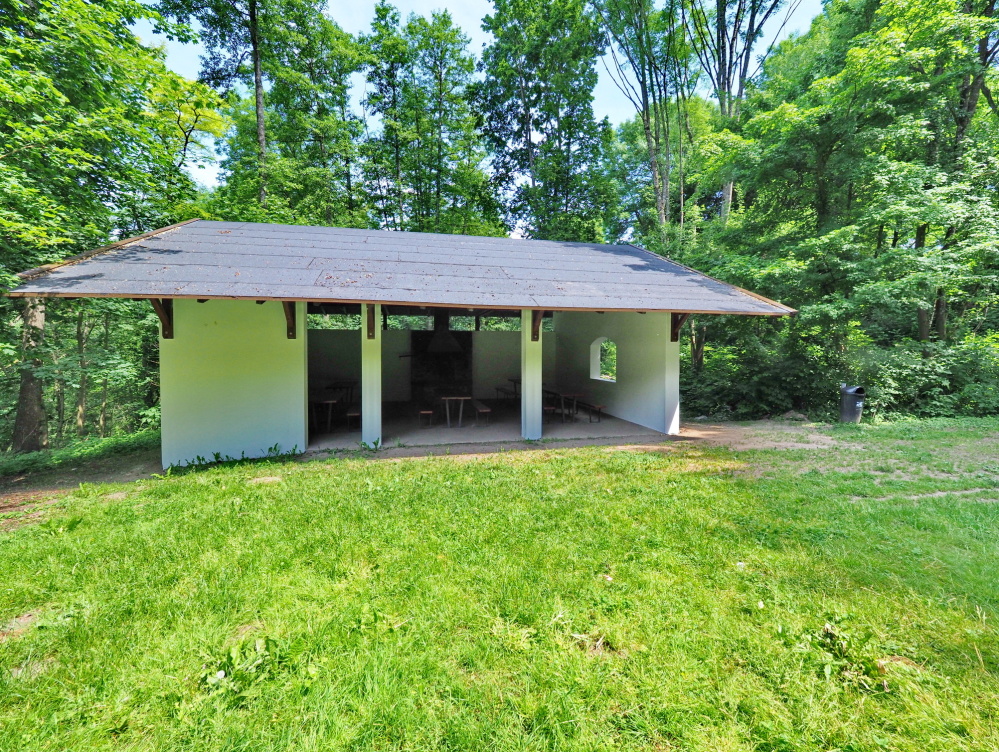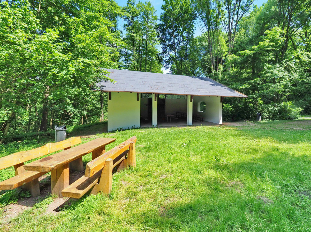 Grillhütte mit ausreichend Platz für Ballspiele. Die Grillstelle verfügt über einen Grillrost.