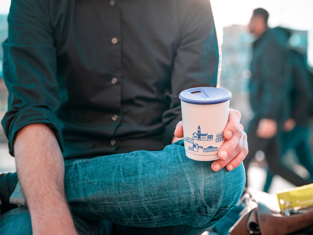 Getränke unterwegs ohne Verpackungsmüll genießen - Saarbrücken ist Partner des Mehrwegbechers Quattro Cup.