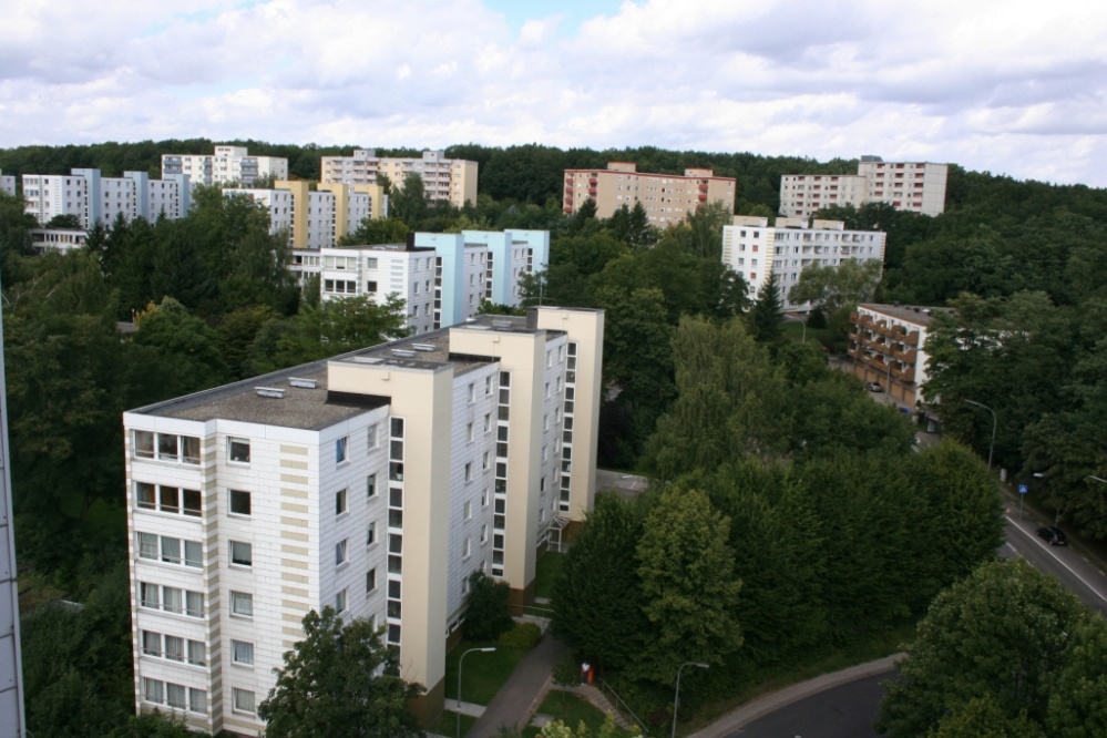 Aber auch an den zwölf sechsgeschossigen Wohnhäusern wurde vieles getan: Die Fassaden wurden gereinigt und schadhafte Stellen beseitigt, die Balkone der Dreizimmerwohnungen allesamt saniert und die Brüstungen neu gestrichen, an 72 Vierzimmer-Wohnungen wurden Balkone angebaut und zu guter Letzt wurden die Flachdächer saniert.
