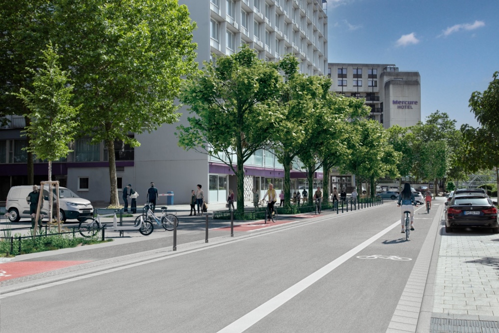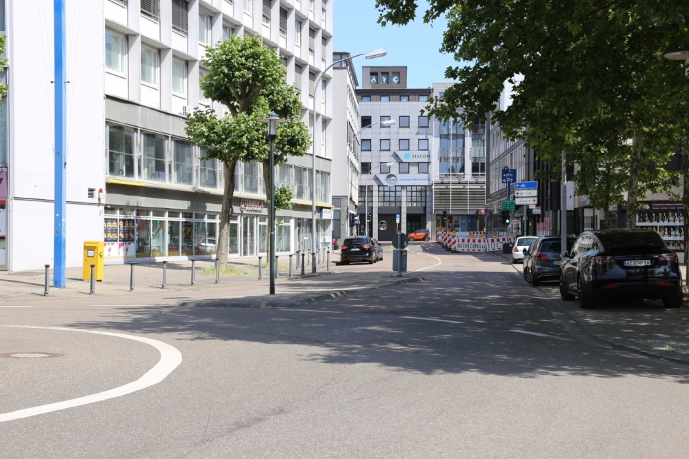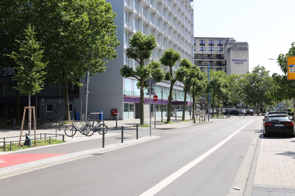 Im Abschnitt zwischen Kohlwaagstraße und Viktoriastraße hingegen ist der Straßenraum deutlich schmaler. Für den Radverkehr gibt es in diesem Abschnitt keine eigene Infrastruktur.